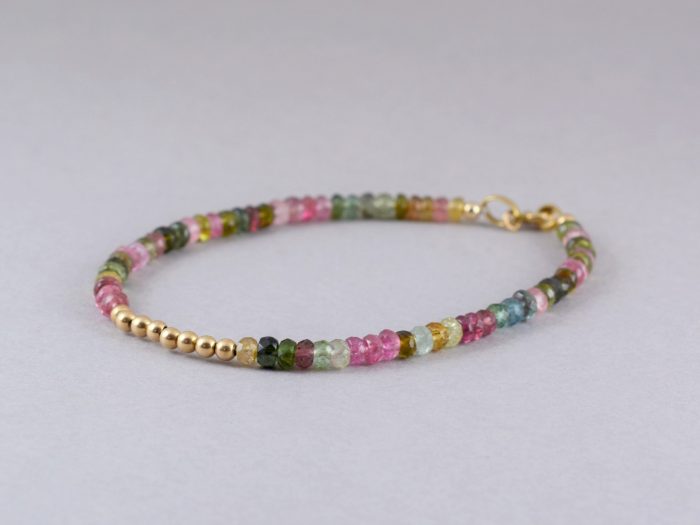 צמיד חרוזי טורמלין עם כדורי זהב 14 קראט